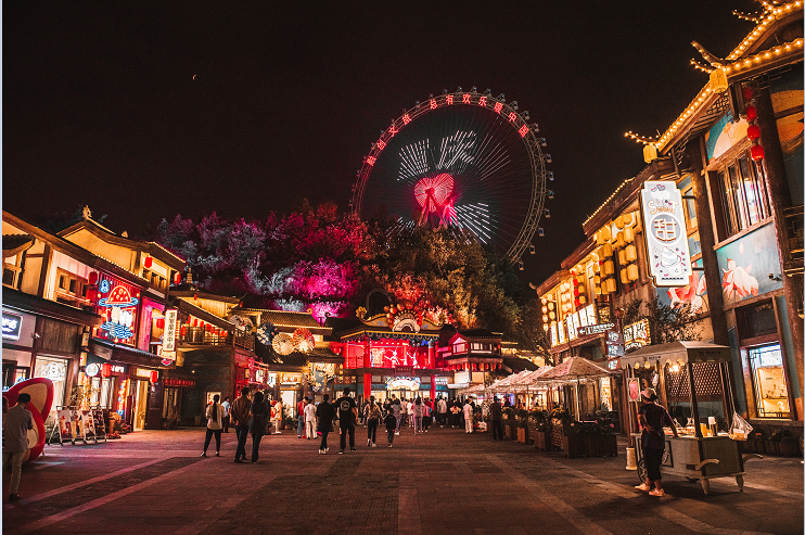 亭台楼阁雕梁画栋,古色古香的巴渝小镇坐落在山体上,结合现代化的零售街区,打造精致的吃喝玩乐一体化度假游玩体验。4大主题功能区,22项游乐设备,满足不同口味的特色餐饮、构思巧妙的主题商店以及活力十足的游乐设施、精彩演艺,同时开放现代化十足的科技体验。
