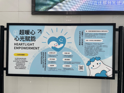 物理空间渗透同样注重 “沉浸式体验”。公司在办公楼电子屏循环投放心理科普视频,在办公室、食堂设置心理小贴士立牌,在心理咨询室与劳模工作室打造情绪墙、知识展板,甚至将心理标语融入车间文化墙设计,让 “关注心理健康” 成为全体员工的共识,为后续 EAP 服务开展奠定坚实基础。