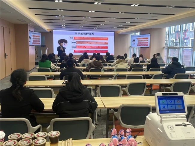 在“如何调节压力”部分,李老师不仅分享了快速解压技巧与情绪稳定方法,还引导参与者通过“现场压力自测”互动环节,直观了解自身压力状态,并学习如何通过有效沟通、社会支持系统建设等方式,实现情绪的有效管理与释放。他特别强调“理性应对”与“职业发展”的相辅相成,帮助大家在新的一年中,以更健康的心态规划职业路径,提升工作效能与幸福感。