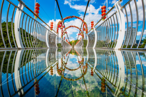 沿着透明玻璃栈道在10公里长的峡谷中穿行