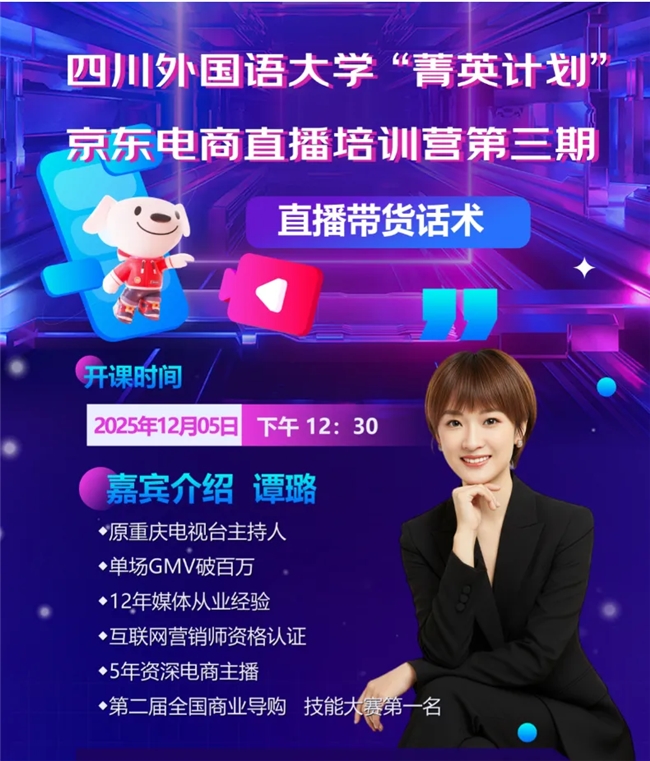 “菁英计划”电商直播培训营是京东(重庆)数字经济产业园与四川外国语大学深化校企合作、推动产教融合的重要举措之一。未来,京东园区将联合更多高校,持续开展系列实战培训,助力学生夯实职业技能、拓展就业渠道,为重庆乃至全国的电商与跨境贸易发展输送更多高素质、专业化的人才。
